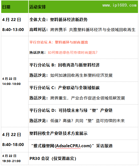 論壇主辦方將攜手綠色再生塑料供應鏈聯合工作組(GRPG)在活動當天舉辦高端閉門會議——2024塑料循環30人閉門會議(PR30) - 4月22日19:30-21:00。該會議將邀請30位行業領先企業和機構高管,共同探討塑料循環經濟綠色戰略未來產業布局發展,加快發展方式綠色轉型,助力碳達峰碳中和,培育推動現代化發展下的塑料回收再生與循環經濟綠色新質生產力。