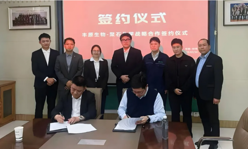 2025年3月24日,廣東聚石化學股份有限公司(以下簡稱聚石化學)與安徽豐原生物技術股份有限公司(以下簡稱豐原生物)正式簽署戰略合作協議。雙方將圍繞聚乳酸(PLA)材料的研發、生產應用及市場拓展展開深入合作,共同推動環保新材料產業的創新發展。