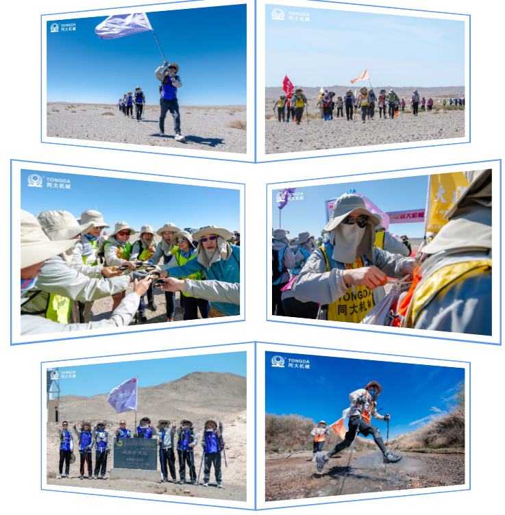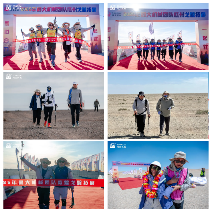 戈壁灘上的風沙似歷史的訴說,輕撫過每一寸土地,也見證著工業制造人將產線上的默契移植戈壁——有人主動退居隊尾守護落后者,有人用手杖做牽引為隊友支撐體力,有人分享的榨菜干糧,無一不是在碧藍的天空下交換的人生故事。當對講機傳來"全員間距不超過100米"的指令,這支曾由獨立個體組成的隊伍,已然蛻變為精密咬合的齒輪組。玄奘孤身求法的傳說仍在耳畔,而同大機械的團隊用現代工業制造人的方式,在相互支撐中完成了對千年戈壁精神的傳承。