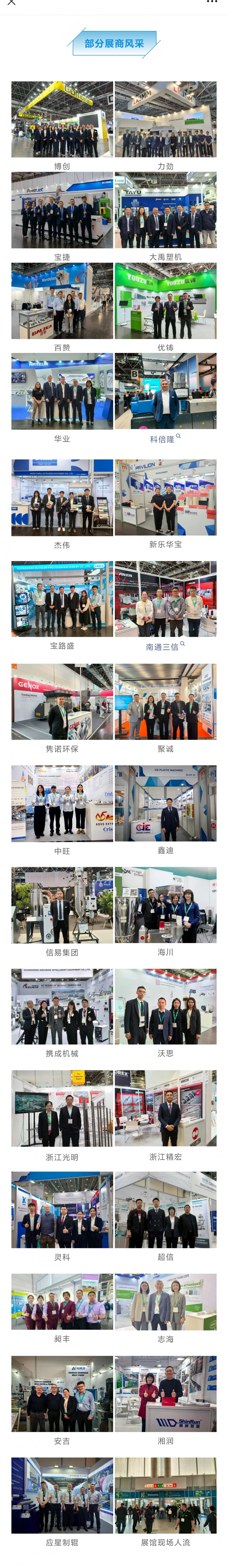 展會現場,聚焦“循環經濟”、“數字化”、“以人為本”三大熱點話題,集中展示了塑料機械設備、原料助劑、半成品、零部件與增強塑料制品等領域的最新突破。其中,可持續材料、回收技術與智能化生產技術成為焦點,多家中國知名企業,如:海天、伊之密、震雄、博創、大禹、金緯、金湖、三信等驚艷亮相,展示了在綠色材料、智能裝備與循環解決方案等方面的自主創新成果,彰顯出中國制造在全球塑料產業轉型中的強勁動能與責任擔當。