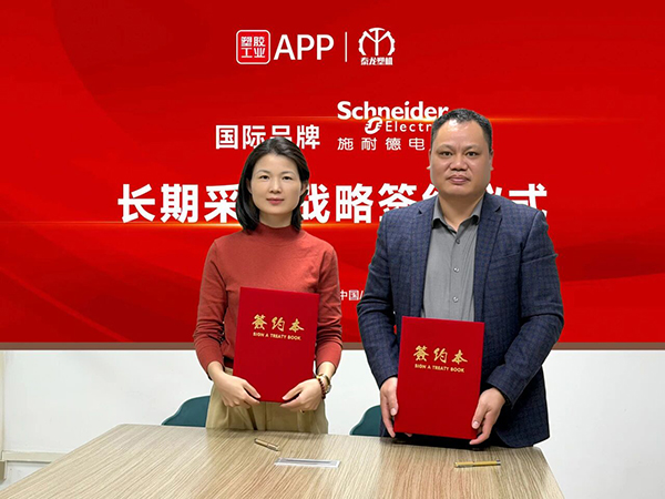 值此契機,塑膠工業與廣州泰龍環保科技有限公司(以下簡稱泰龍)正式簽署戰略合作協議。未來,泰龍將依托塑膠工業APP的數字化集采平臺,通過國際品牌原廠直供價實現核心電氣元件的源頭采購,系統性優化供應鏈成本結構,推動設備制造效能的跨越式提升。