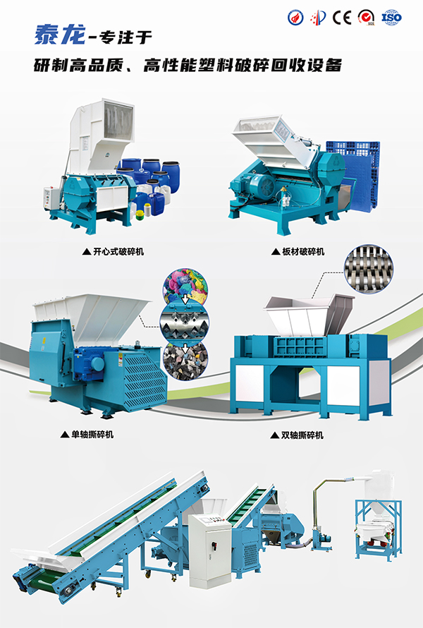 作為華南塑料回收設備領域的標桿企業,泰龍長期深耕PET瓶片、HDPEPP硬塑料、LDPE薄膜等全品類回收設備研發。其核心產品——塑料撕碎機、破碎機、擠出造粒系統等,均搭載施耐德、西門子等國際一線電氣元件,設備故障率及能耗都大大降低,廣泛應用于汽車、醫療、包裝等各大行業。