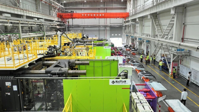 小鵬肇慶基地作為小鵬汽車產能與產業鏈核心,部署了五大工藝車間及眾多智能生產設備,其中樹脂車間可規?;a智能純電動汽車保險杠類產品。海天設備的入駐,將進一步完善基地樹脂件生產配套能力,肩負起塑造智能座駕“第一印象”、守護出行安全的關鍵使命,助力保險杠生產效率與產品品質雙提升。