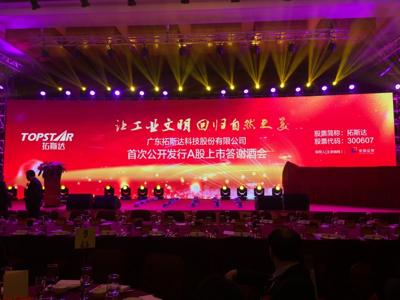 今晚,拓斯達在東莞市松山湖科技產業園區凱悅酒店一樓宴會廳舉行答謝酒會。