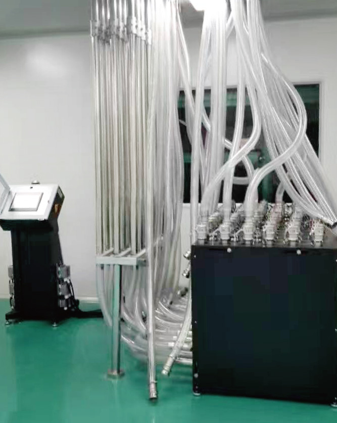 原料通過截料式吸料盒由原料分配站分配到每臺注塑機。真空管路配備分離式真空分離閥,通過膜片對吸風管氣流的接通與關閉進行控制。全密閉式的輸送過程,零污染,保證了無塵車間的清潔。
