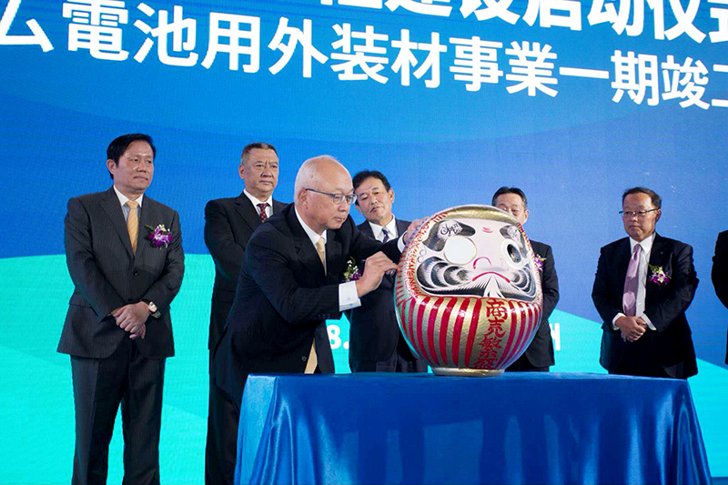 公司鋰電池鋁塑膜項目日本合作伙伴凸版印刷株式會社專務執行董事松田直行先生、東洋制罐株式會社專務執行董事毎田知正先生參加了本次活動并分別致辭,表達了對新綸科技的美好祝愿,同時還特意為慶典定制了一個日本「達摩大師」吉祥物,并現場進行了開眼儀式,預祝新綸科技的鋁塑膜事業蒸蒸日上,早日實現成為世界No.1的夢想!
